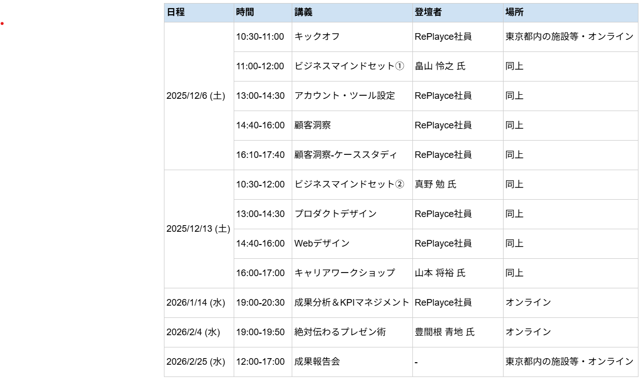 ※講師陣および各項目のスケジュールは、変更となる可能性があります。