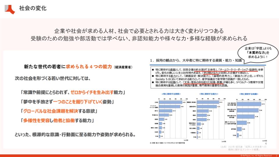 株式会社NTTドコモ 経営企画部 事業開発室長 原 尚史 RePlayceは教育と実社会を結びつける新しい学びの形を提案し、次世代を担う人材の育成を後押ししています。その取り組みは、学生一人一人が主体的に考え、挑戦し、未来を切り開く力を育むものであり、社会全体にとって大きな価値があると考えています。 NTTドコモとしても、この取り組みがさらに広がり、多くの学生の成長と挑戦につながっていくことを大変心強く思うとともに、ともに教育の変化を推し進めていけることを心から期待しています。