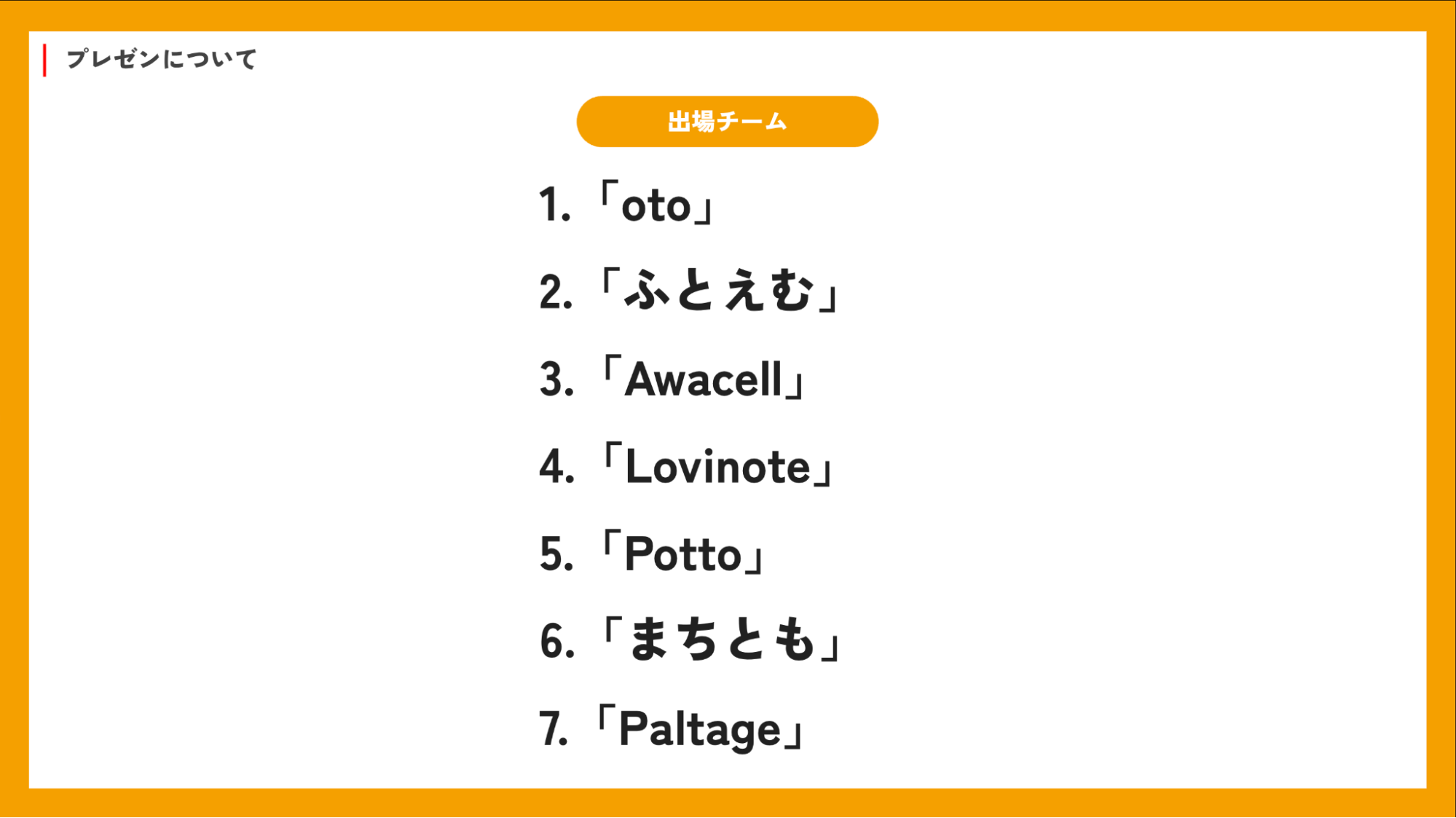 リアルな「遠距離恋愛」というテーマや、「似ている推し・知り合い」という差別化の視点がとても良かったです。プレゼンを見ていて、「すぐにでも実装できそうだな」と感じました。 ある程度内容がまとまってきたら、実際に試作してみたり、ユーザーインタビューを行って意見を集めてみたりすると、さらに次のステップに進めそうです。